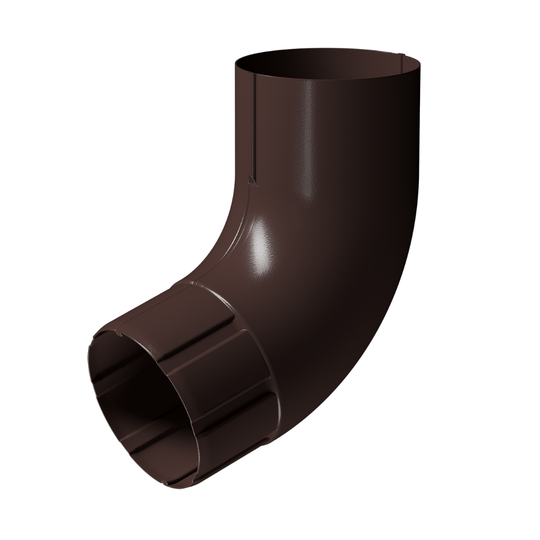 Пара колен используется для создания перехода от водосборной части к системе водослива. Колено водосточной трубы 72 градуса «Stal Premium» имеет 4 варианта цвета, в том числе популярный оттенок коричневого «Шоколад».