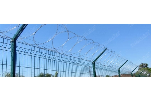 Плоский барьер безопасности (ПББ) представляет собой плоскую, спиралевидную конструкцию из армированной колючей ленты, витки которой, также как и у СББ, скрепляются между собой при помощи скоб из оцинкованной стали.