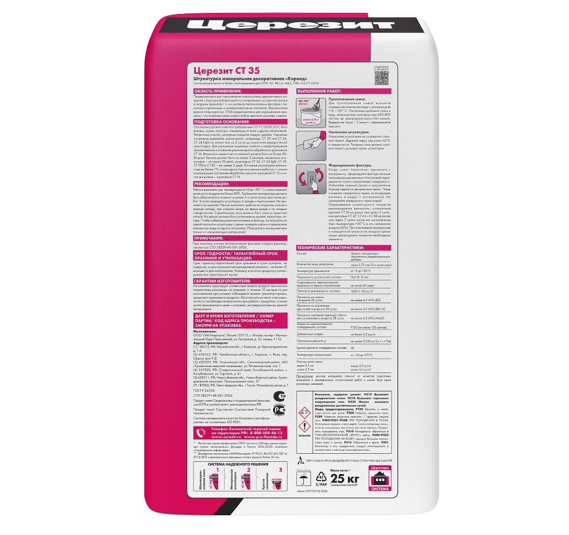 Описание товара: "Штукатурка Ceresit СТ 35 "короед" 3,5 мм под окраску (25 кг)"