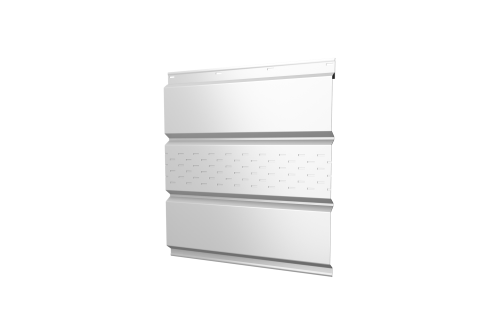 Описание товара: "Софит металлический центральная перфорация 0,45 Drap с пленкой RAL 9003 сигнальный белый"