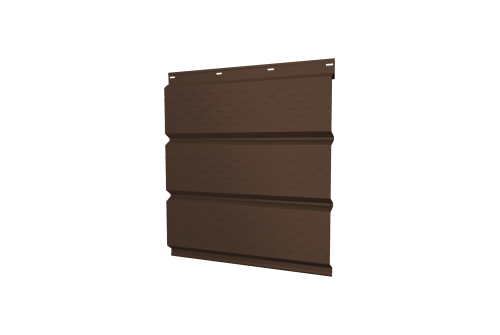 Описание товара: "Софит металлический полная перфорация 0,5 PurLite Мatt с пленкой RAL 8017 шоколад"