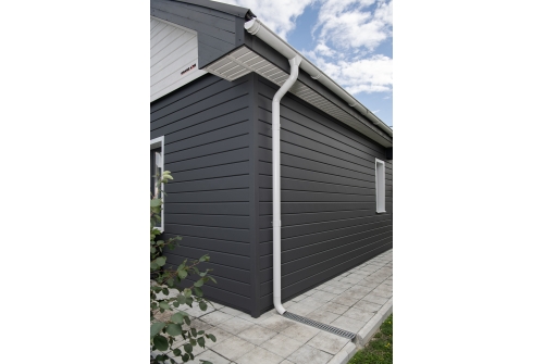 Большая водопропускная способность водостока позволяет собирать осадки с большей поверхности кровли, что приводит к экономии на количестве водосточных труб и сопутствующих элементах.